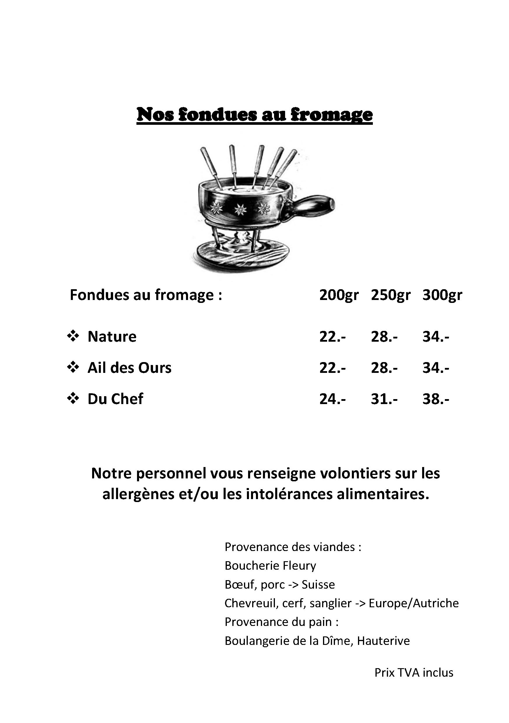 Réservation possible en semaine l'hiver pour une fondue dès 12 personnes.